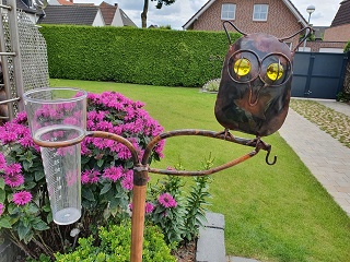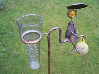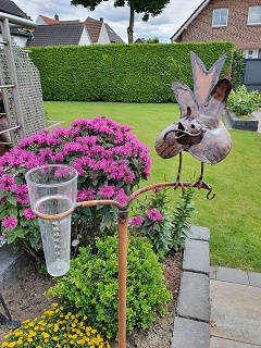 Regenmesser mit Spatz